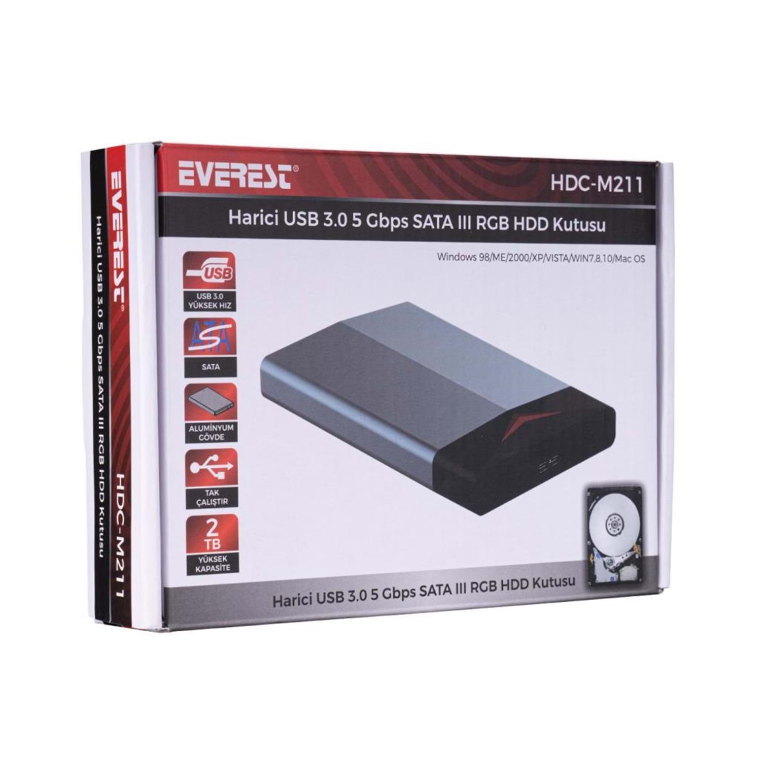 Everest HDC-M211 Harici USB3.0 hız 5 Gbps SATA III 6 Gbps RGB Işıklı Hdd Kutusu