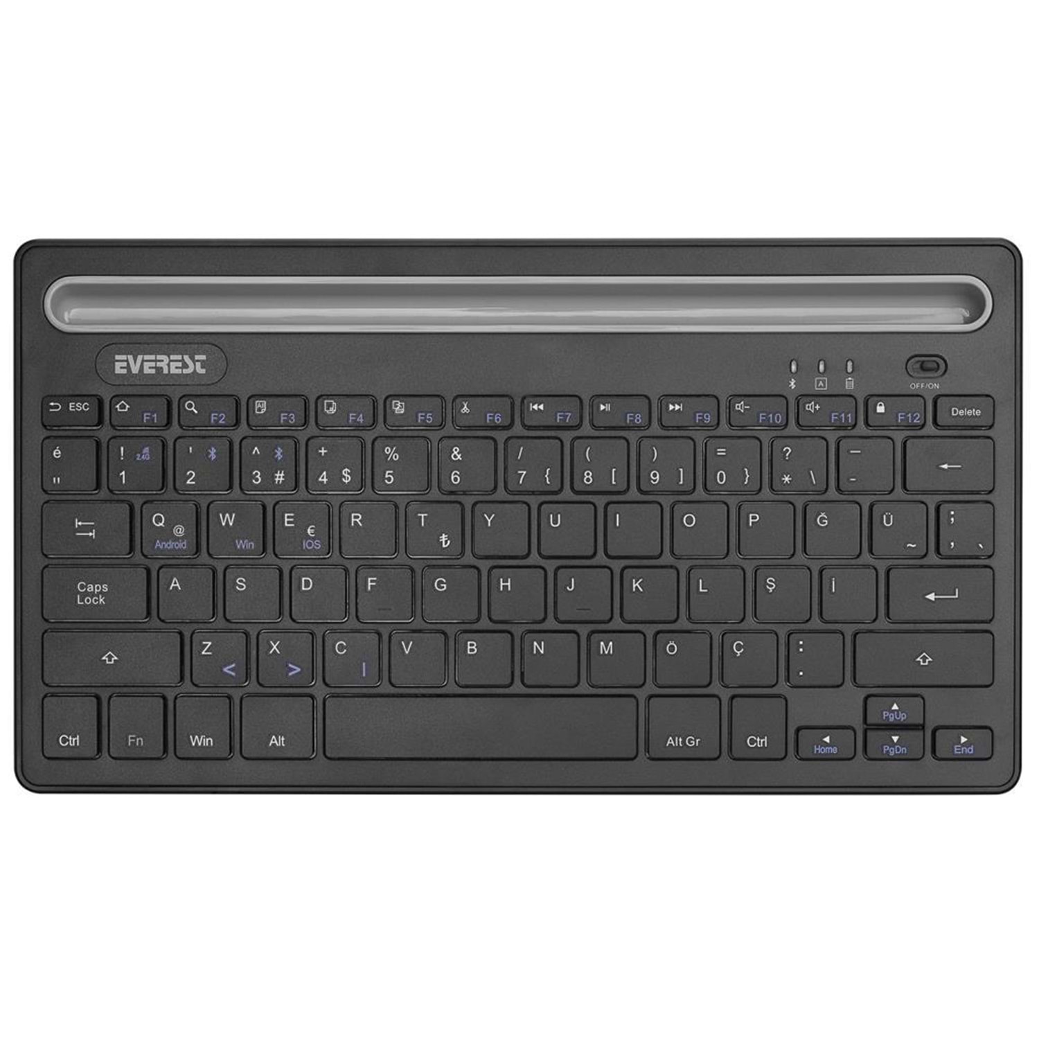 Everest KB-BT82 Siyah/Gümüş Bluetooth Ultra İnce+Şarjlı Q Mac/Win/Android/Ios Uyumlu Kablosuz klavye OUTLET