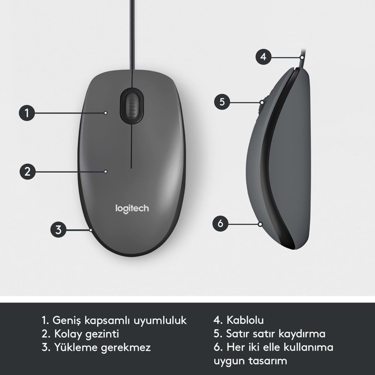 Logitech B100 Siyah Kablolu USB Mouse 910-003357