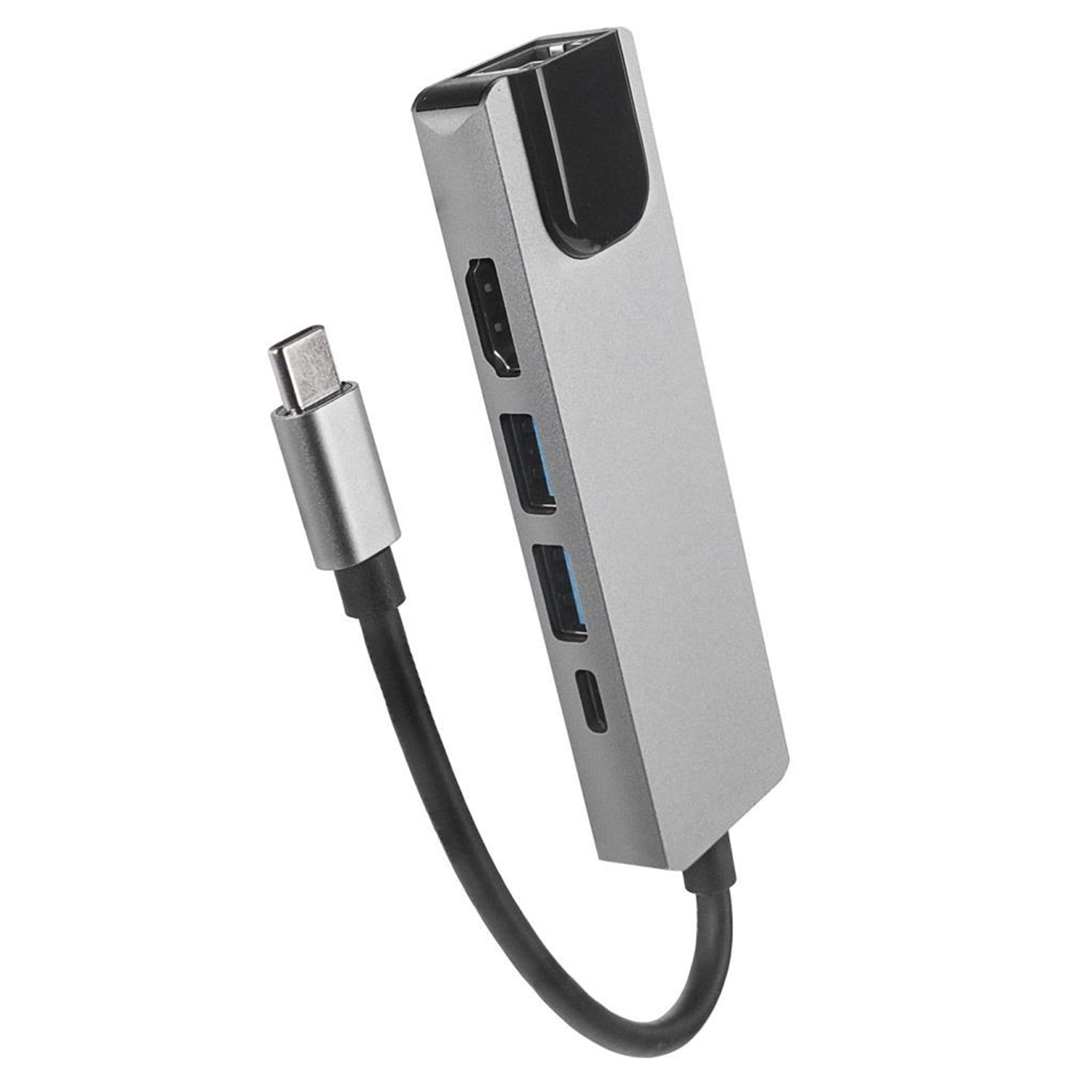 Hytech HY-USBC80 4K@30Hz Gri Metal 2xUSB3.0 1xHDMI, 1xPD 10/100/1000M Type C Adaptör