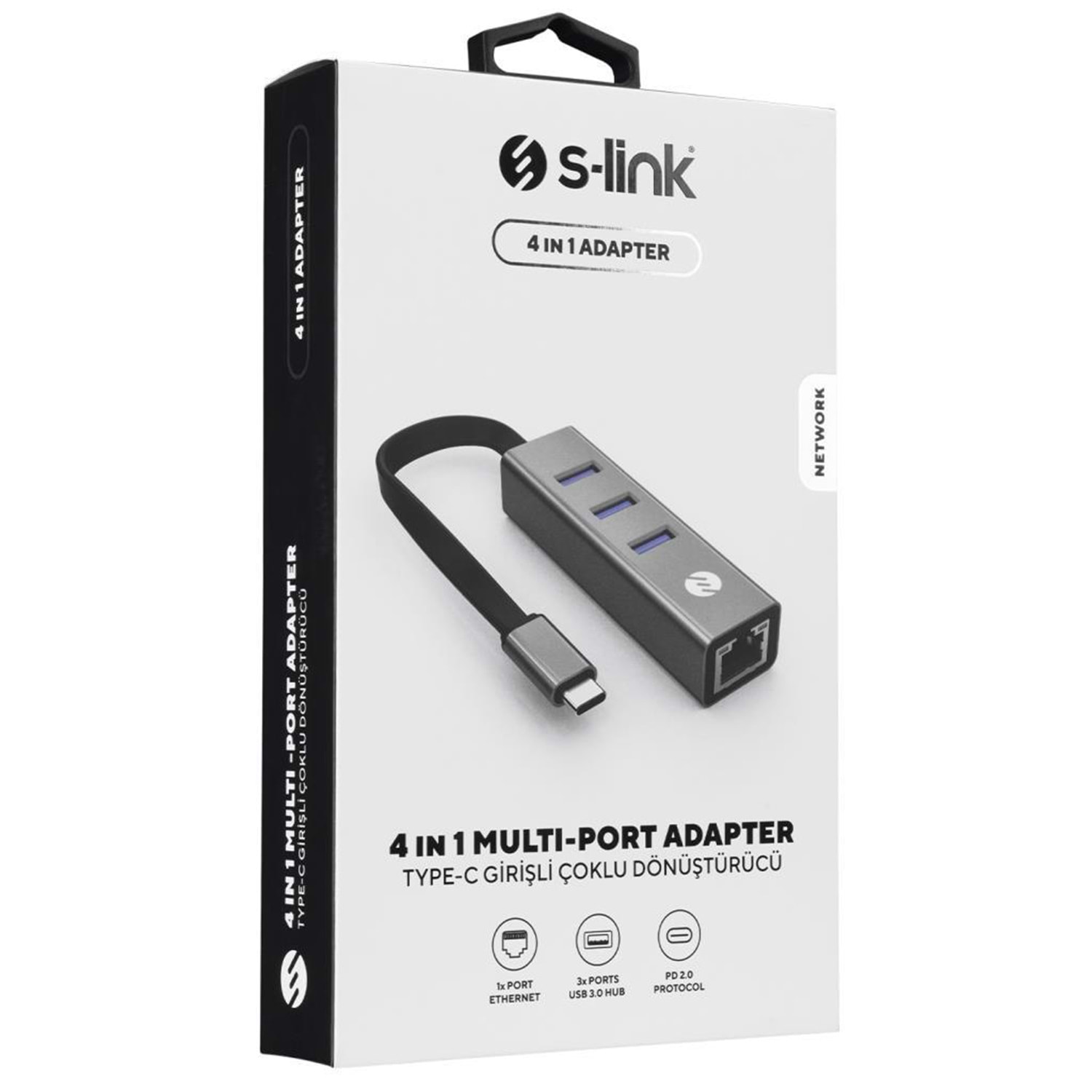 S-link Swapp SW-U3325 4 in 1 Gigabit 1000Mphs 3 Port USB 3.0 Ethernet Type C Hub Adaptör