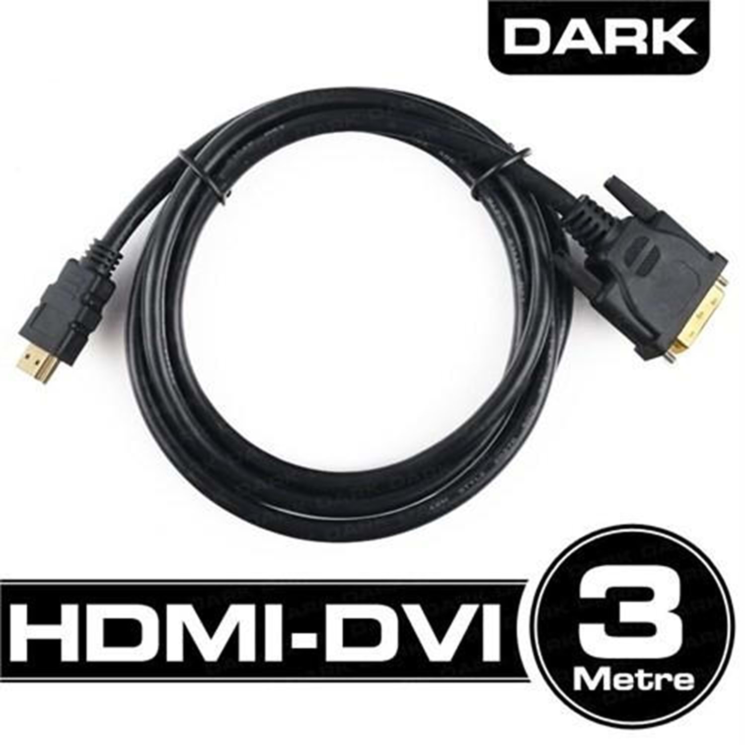 Dark HDMI-DVI kablo görüntü kaynağınızla daha uzaktaki görüntüleme cihazınız arasındaki bağlantıyı rahatça yapabilmeniz için 3m uzunluğundadır.