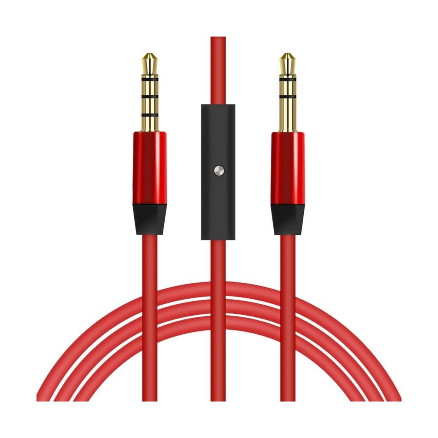Concord C-818K Mikrofonlu AUX Stereo Kablo, 3.5mm Jak Mikrofonlu Ses Kablosu 1 Metre Kırmızı