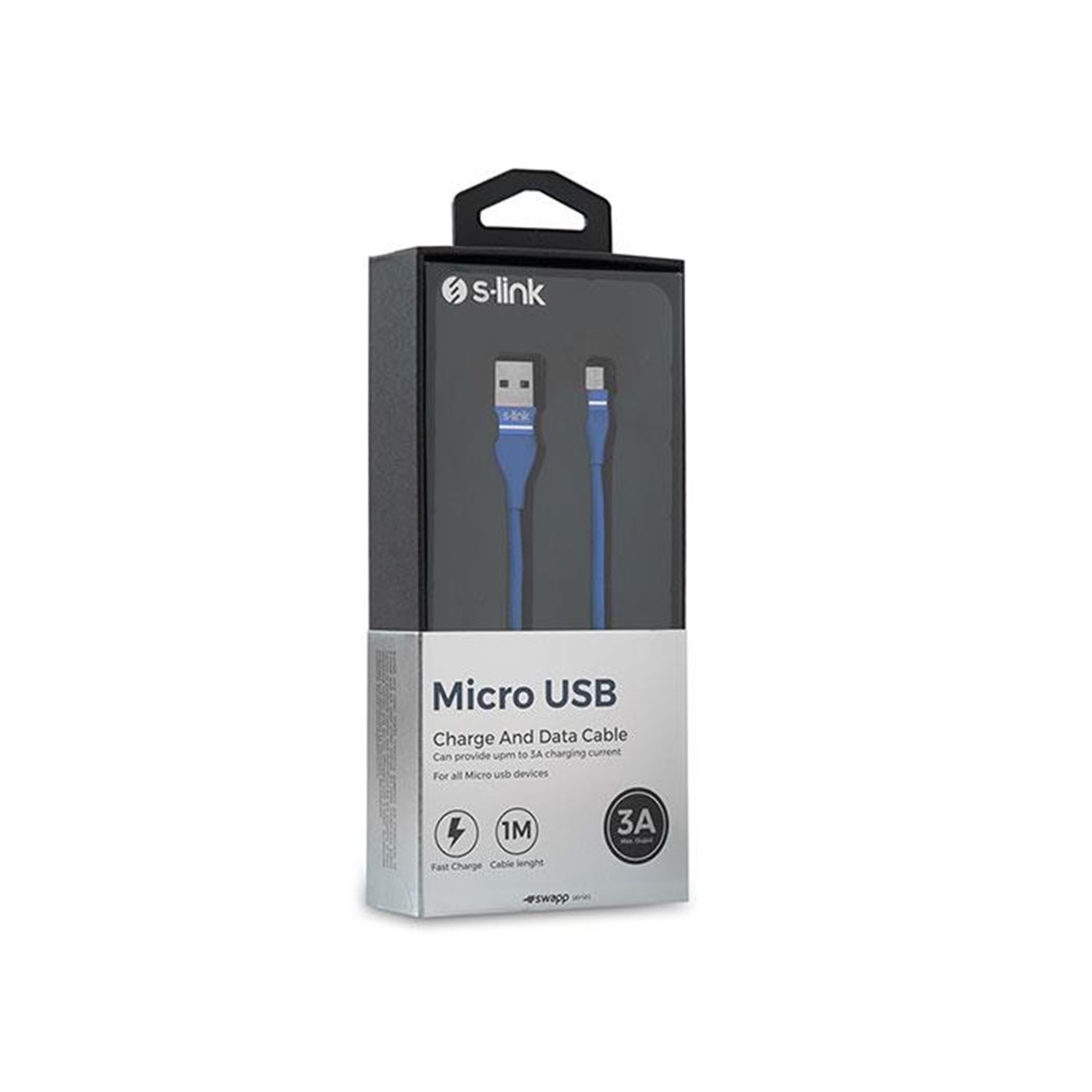 S-link Swapp SW-C540 1M 3A Micro Usb Lacivert Şarj Kablosu